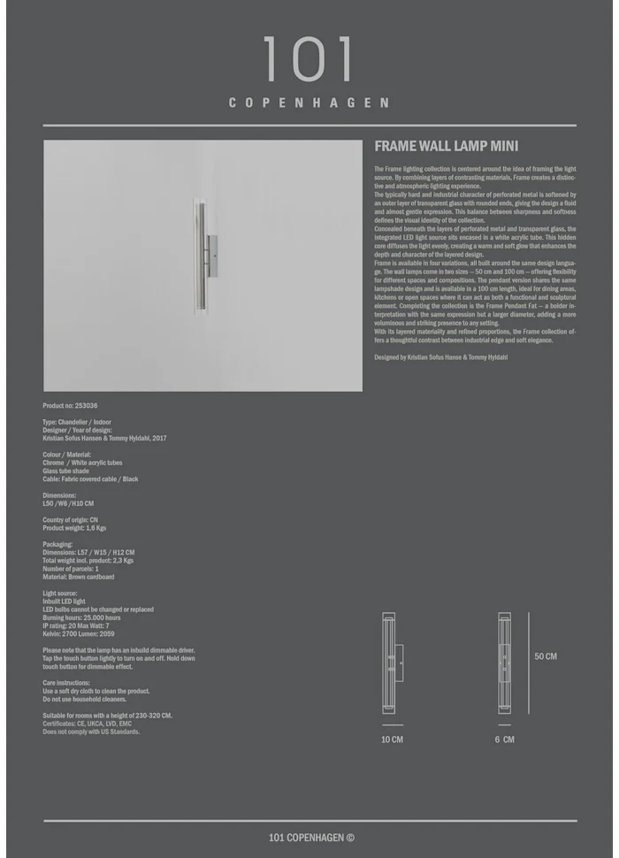 壁燈提供兩種尺寸(50 cm 與 100 cm),適合不同空間與組合。