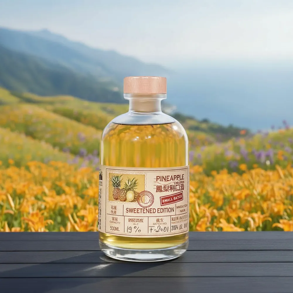 嚴選花蓮瑞穗富興地區小農當日現摘的土鳳梨,新鮮果肉直送釀製,完整封存果香與自然酸韻。每一口,都是台灣土地熱情與滋養的展現。土鳳梨獨有的濃郁層次在酒體中綻放,酸甜平衡,回味悠長,細膩描繪出台灣最具代表性的風味。