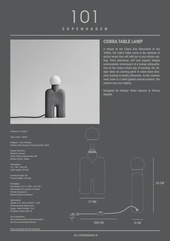 該系列是對 1960 年代眼鏡蛇藝術運動的致敬,是古怪花瓶和燭台的縮影,可擺至於任何室內環境增添歡樂。燈具的造型充滿奇思妙想,如同異想天開、柔軟而有機的形狀,讓人聯想到人體輪廓和曲線。該系列以手繪草圖為起點,形成身體輪廓。