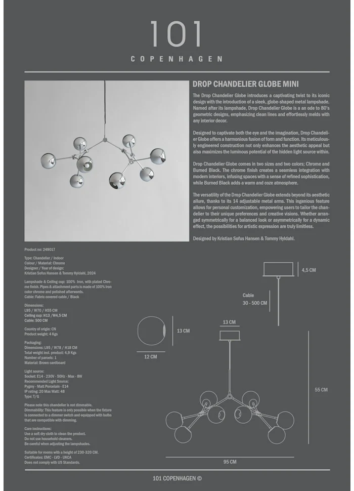 • 滴形圓球吊燈,迷你 - 鉻色(5m)