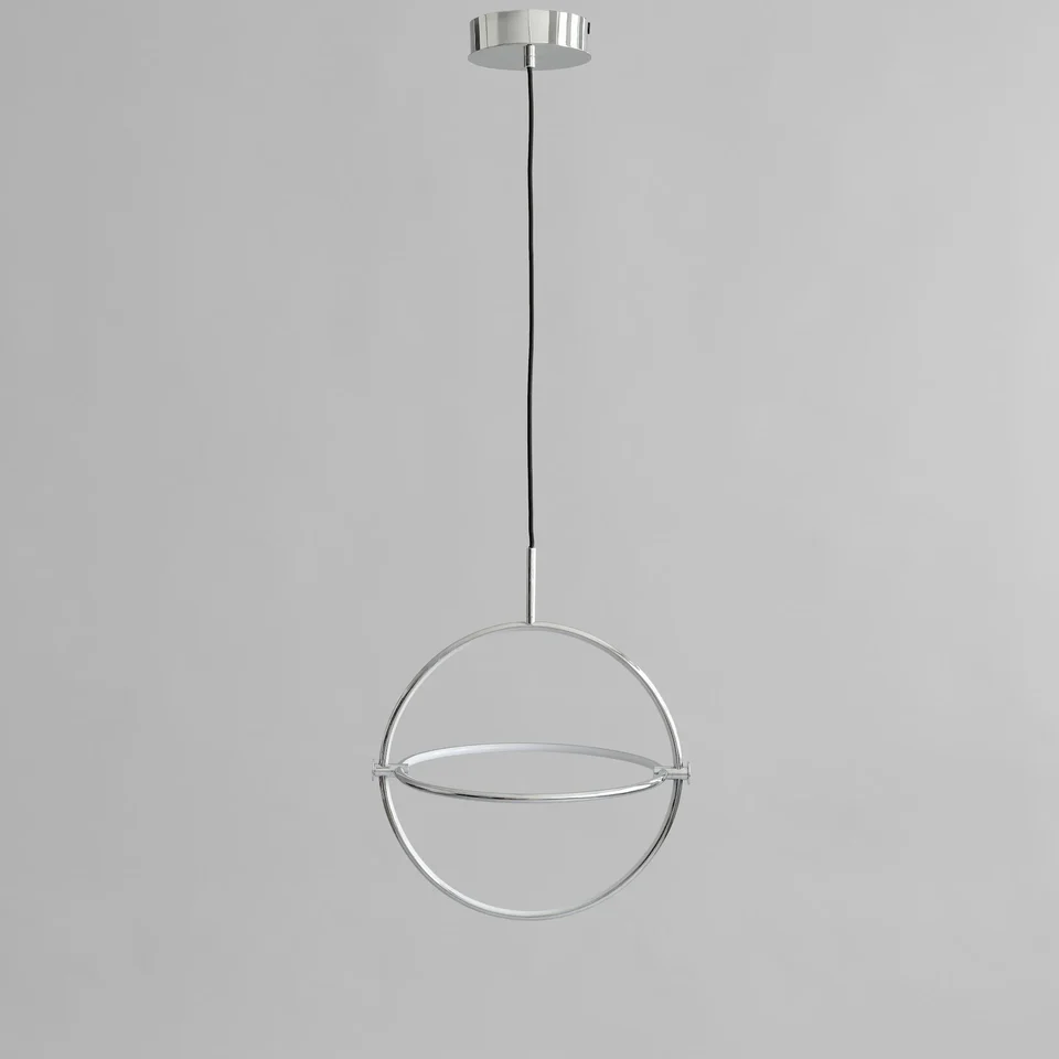 此吊燈有兩種尺寸和兩種表面處理,鏡面鍍鉻和精緻的燒黑色,為室內空間增添現代感與藝術感。