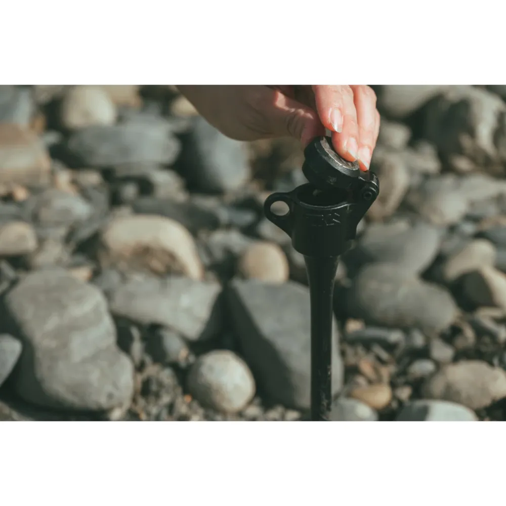 🔹1.底座地釘,有效長度約30公分,寬約1.5公分,特色是敲擊部位與下釘部位鉚釘結合為一體外,還可與懸月燈柱底座共用互換,依地形更換使用(可單獨購買)