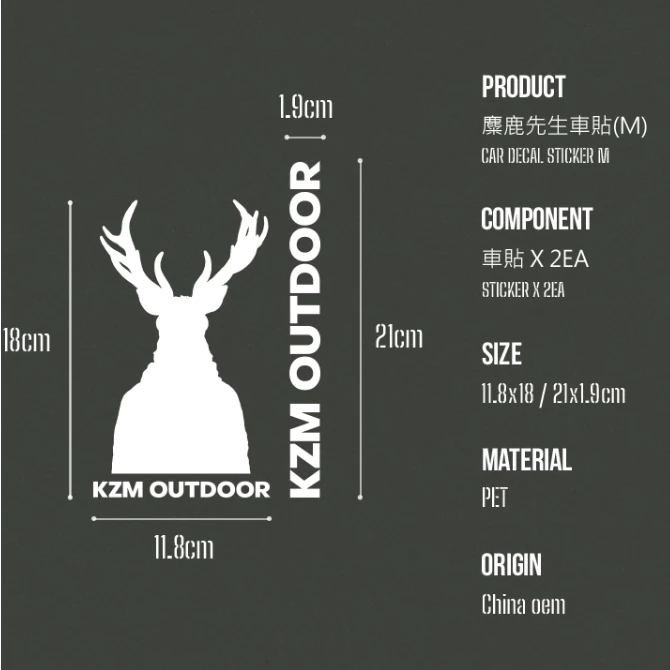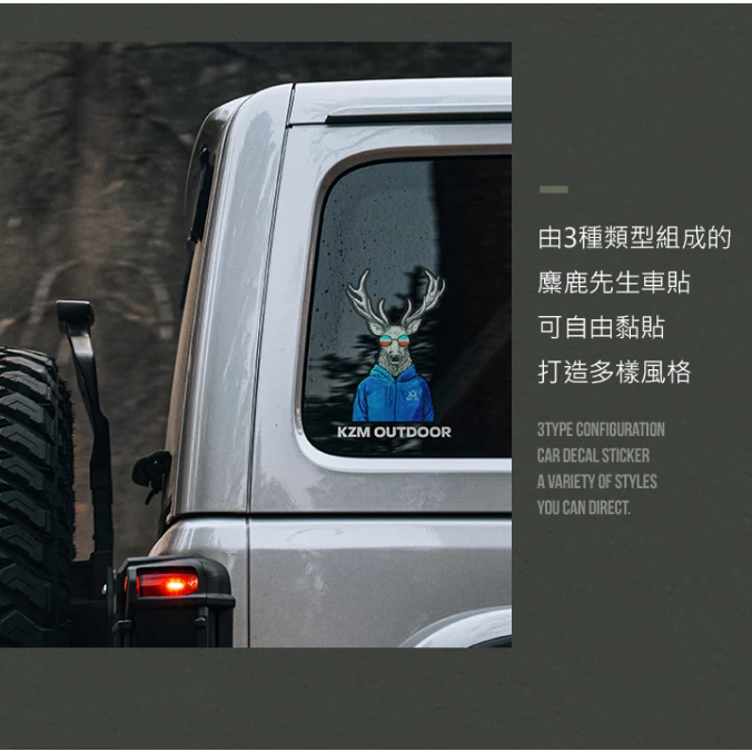 🔹採用KZMOUTDOOR牌象徵的麋鹿先生作為設計,給人時尚的感覺,這是一款精心製作的車貼。