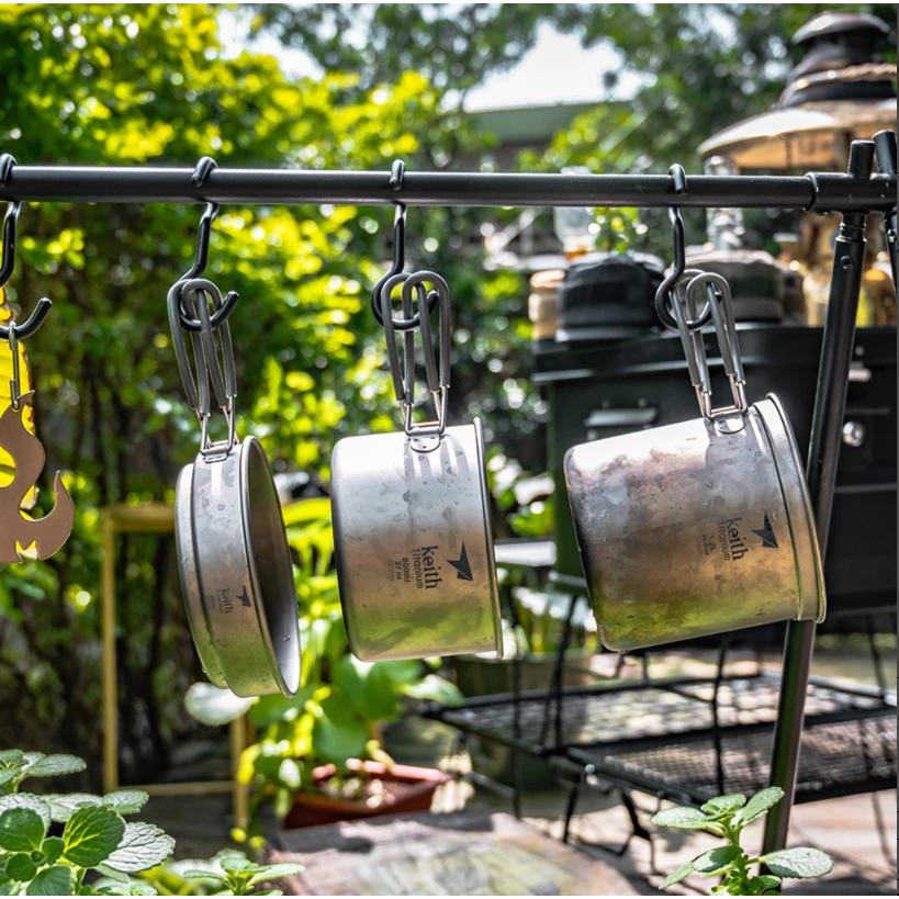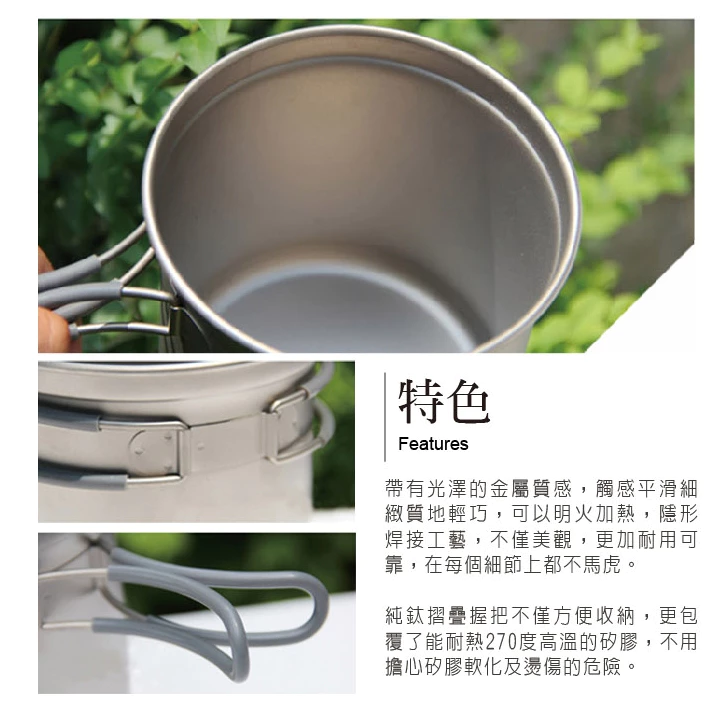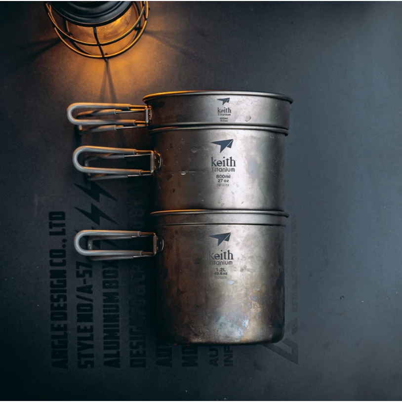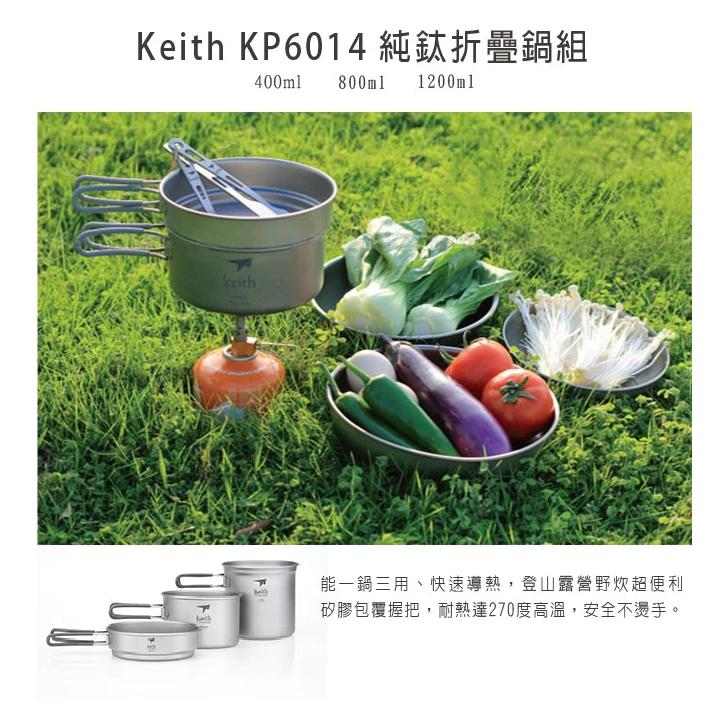 【綠色工場】鎧斯 Keith Ti6014 純鈦單層三件式套鍋 / 折疊把手 / 1200ml (附收納袋) 露營鍋具組