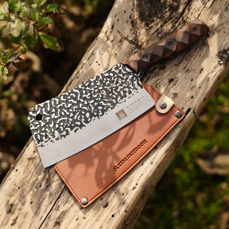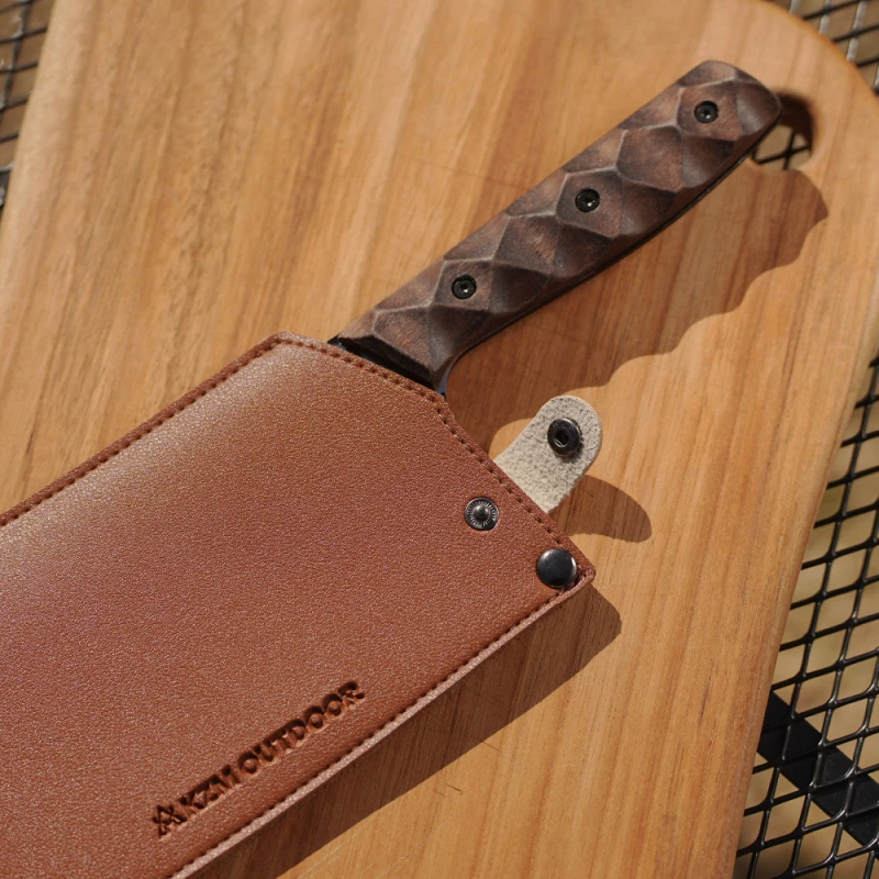 商品【綠色工場】KAZMI KZM 工業風木柄料理刀 3CR13不鏽鋼刀 胡桃木柄 露營刀具 野炊刀具 附皮革收納套