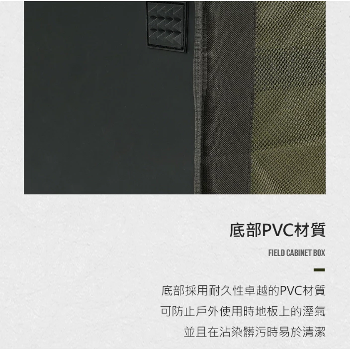 🔹底部採用防水PVC材質,可阻擋戶外使用時從地板上升的濕氣,髒污也可以輕鬆擦拭