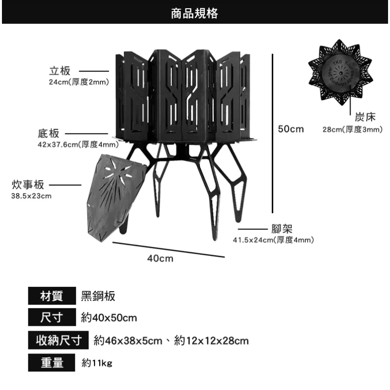 【綠色工場】TKS 曜日 焚火台 TKS-GG01 柴火爐 烤架 柴爐 柴燒爐 取暖爐 焚火台 焚火