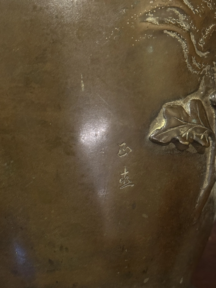 • 名家款 大正時期花鳥嵌金眼銅花瓶