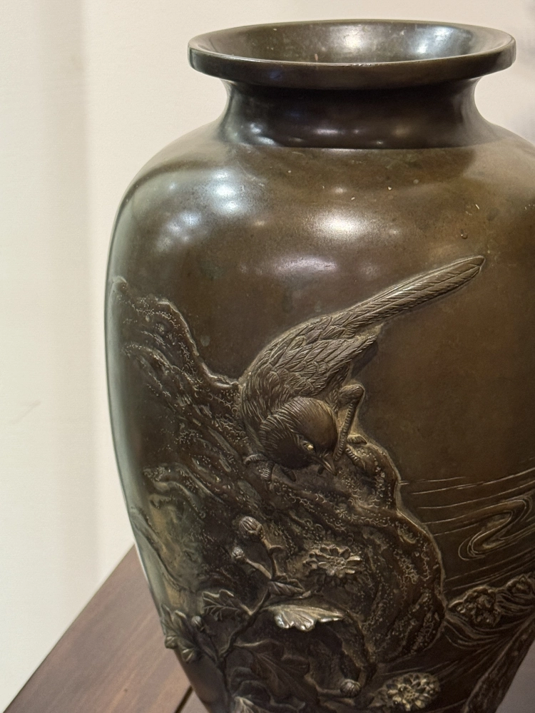 大正時期花鳥嵌金眼銅花瓶