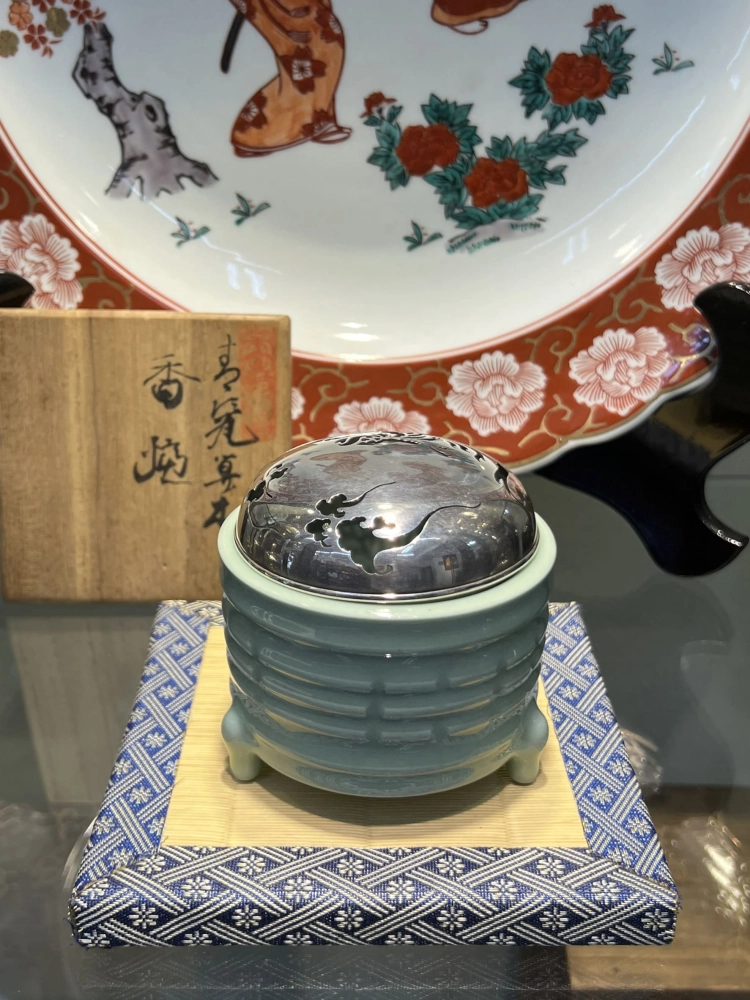 • 明治時期 初代蘇山造 青瓷鳳凰紋純銀火舍香爐