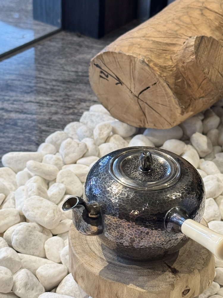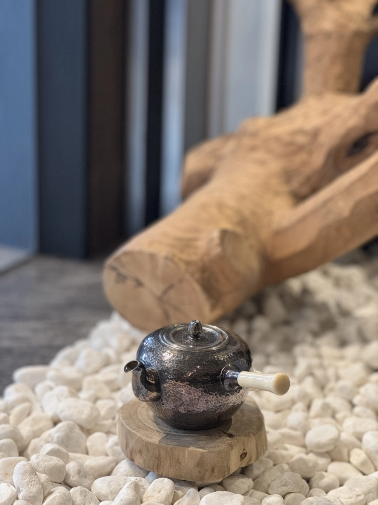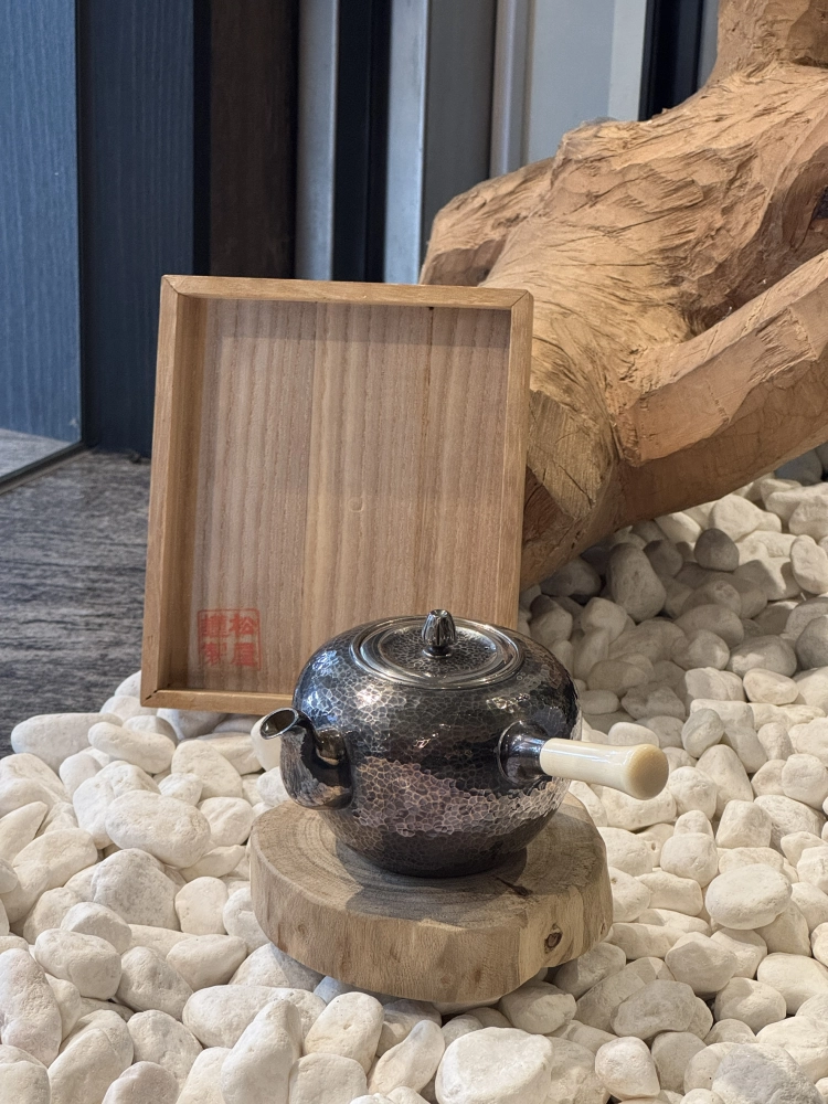 • 松屋訂製 燻黑槌目 純銀牙把急須