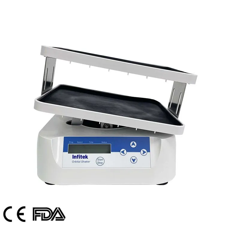SHK-R0525 Rocker Shaker is a mixing device that controlled by DC brushless motor and microcomputer. It can be directly used in the greenhouse or in the freezer. It provides both soft and intensive mixing of solutions or nutrient media in vessels or plastic bags placed on the platform. The device is ideal for gel destaining after electrophoresis and homogenization of bioextraction media. It is optimal for biomolecule hybridization on strips and for staining/destaining procedures. When installed inside a bio-incubator it is ideal for growing cells and cell cultures in disposable plastic reactor-bags.