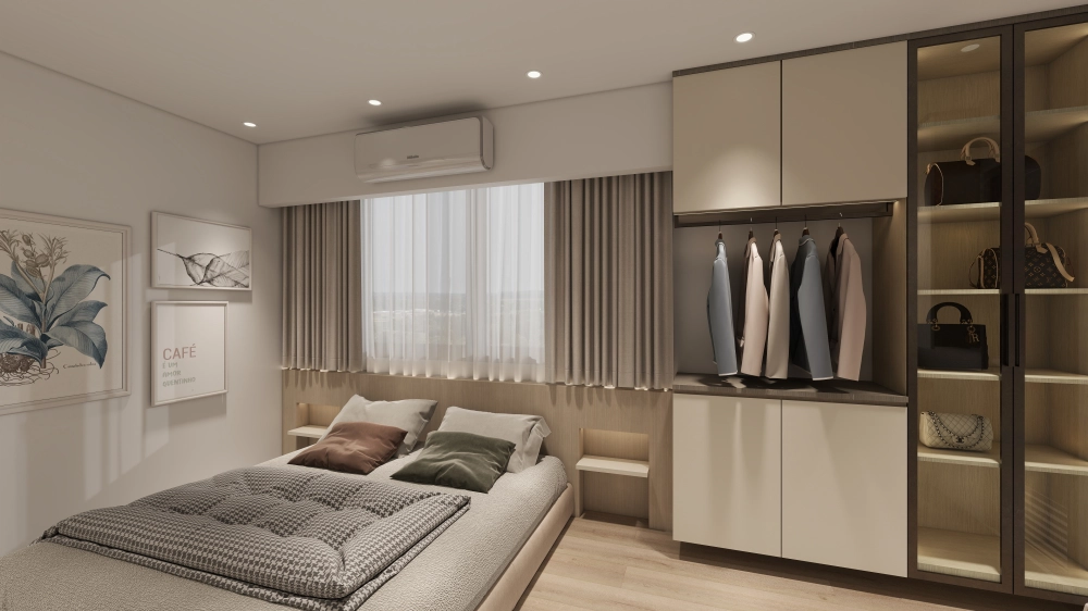 計中,以「北歐風」的純淨與「日式簡約」的純粹為雙主軸,將 23.5 坪的三房空