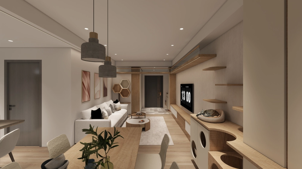 間深度重構。我們不只思考人的居住動線,更將「家」定義為人與毛孩共享的溫潤