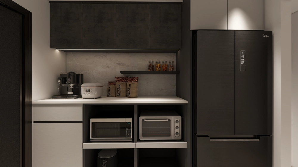 商品不只是餐廳!精銳 SKY ONE 裝潢範例:看中島如何結合電器櫃,讓公領域空間感翻倍。