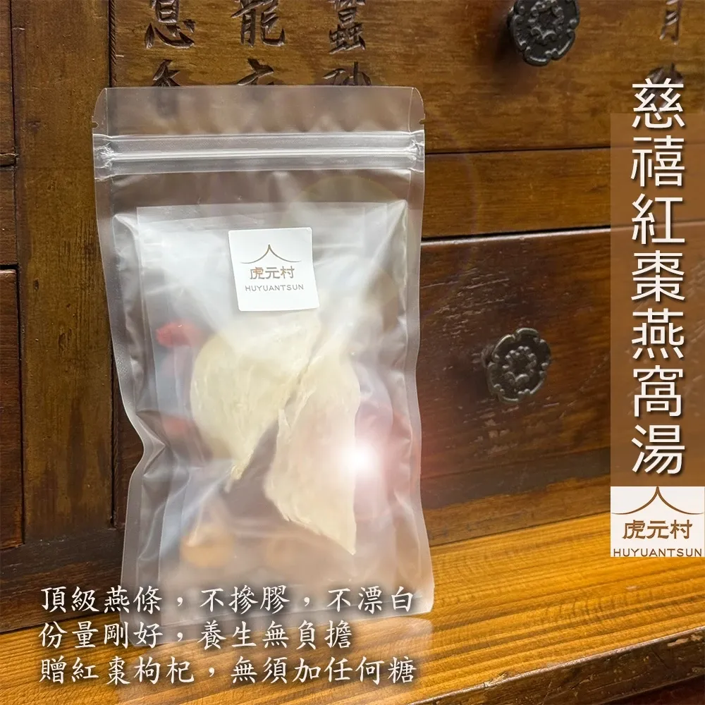 【虎元村】慈禧紅棗燕窩湯/輕份量燕窩/1~3人份/燕窩/頂級燕條2入贈紅棗枸杞/無須加任何糖/小資燕窩湯品/平凡卻頂級