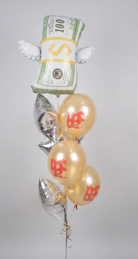 💵財氣沖天造型: 獨特「飛天美金鈔票」鋁箔氣球,象徵業績起飛,財運擋不住!