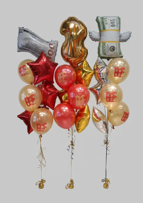 🧧 吉祥寓意加持: 金色氣球印有大紅「旺」字,寓意生意興隆、運勢大旺。