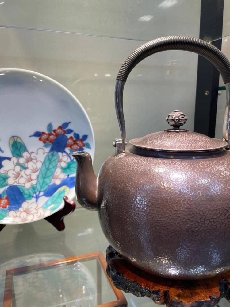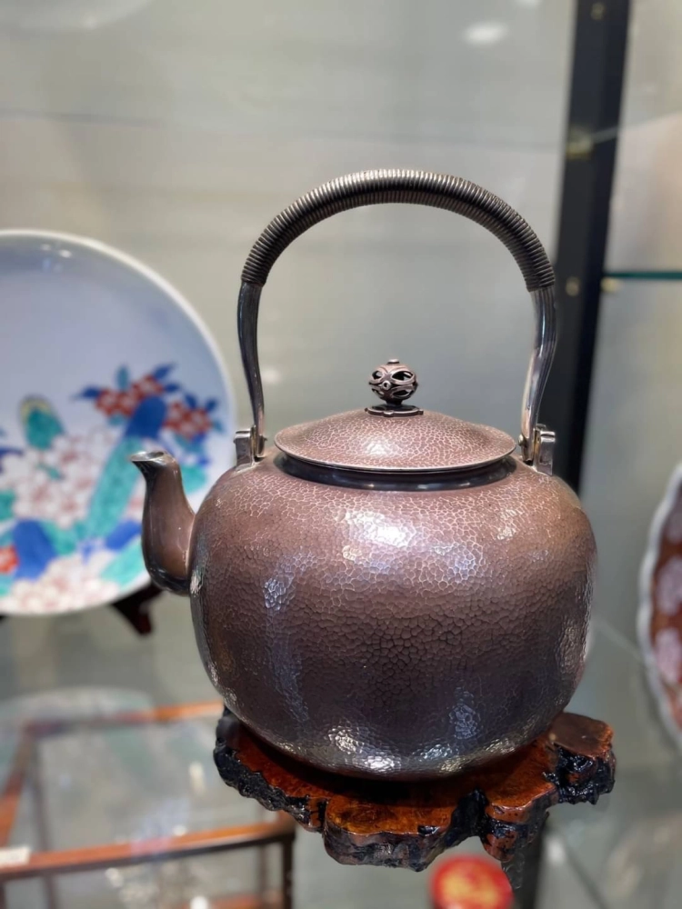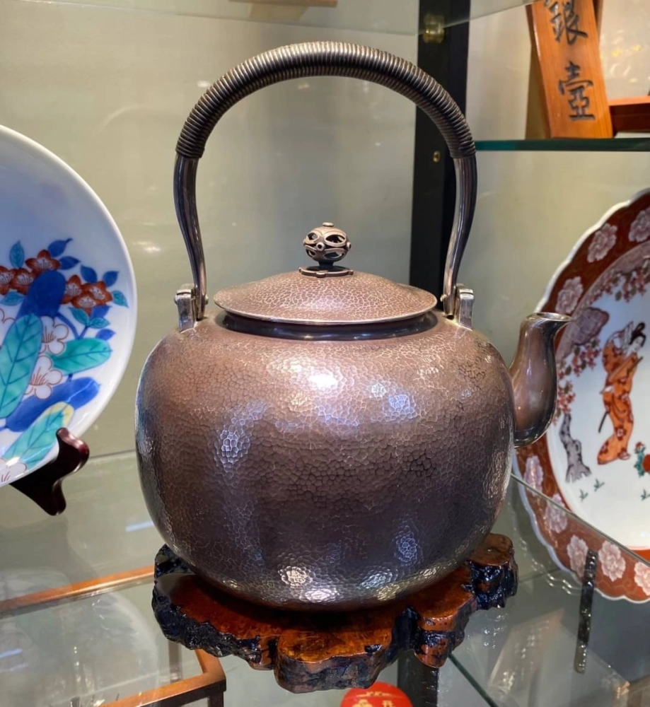• 青松堂作 燻紫搥目純銀大湯沸