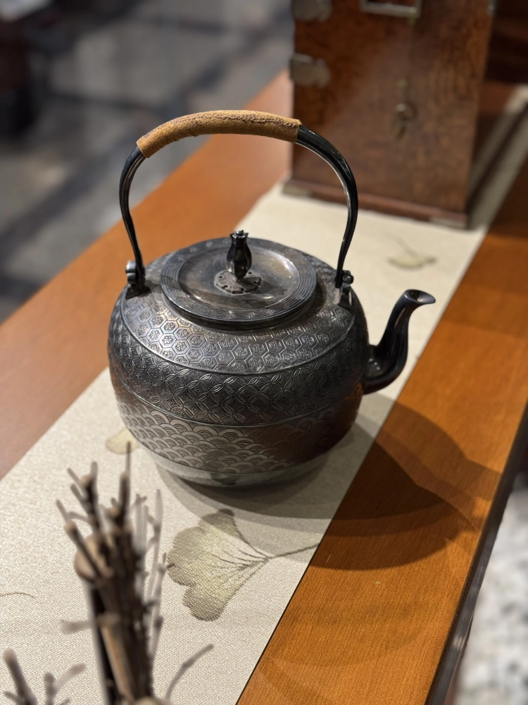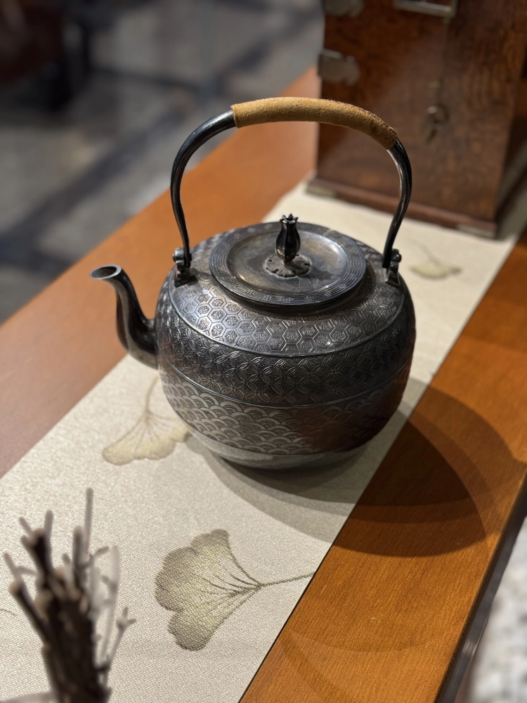一晃齋堂主 金蘭模樣細雕 純銀湯沸