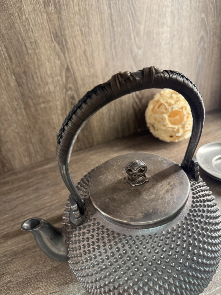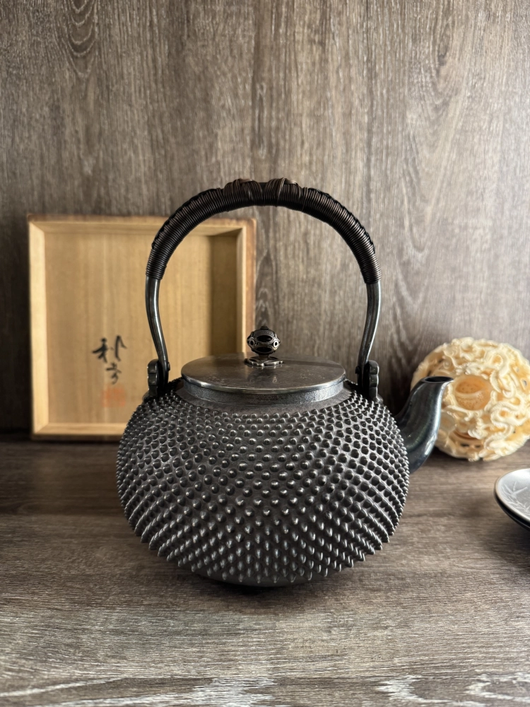 • 秋芳造 霰打紋純銀湯沸