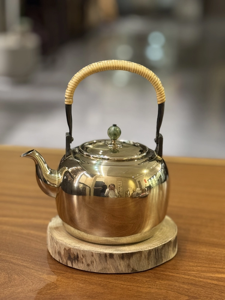 竹翁堂 玉摘鍍金純銀湯沸