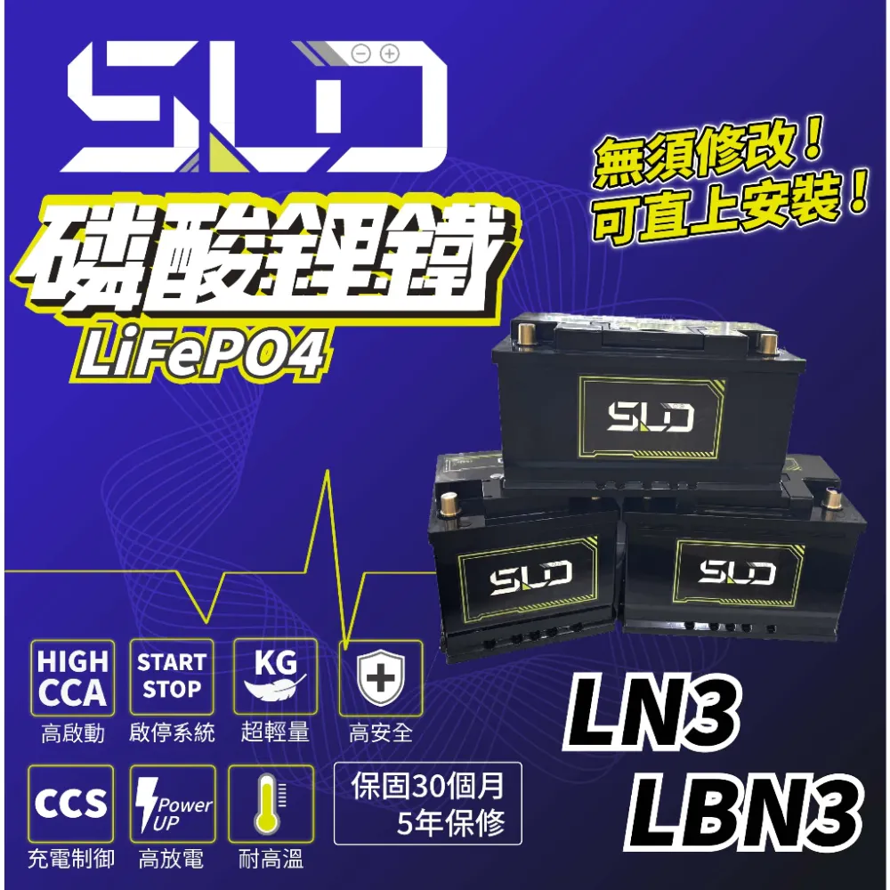 商品SLD 磷酸鋰鐵電池 LN5 汽車電瓶 同DIN100 60038 適用 BMW BENZ W203 保固30個月