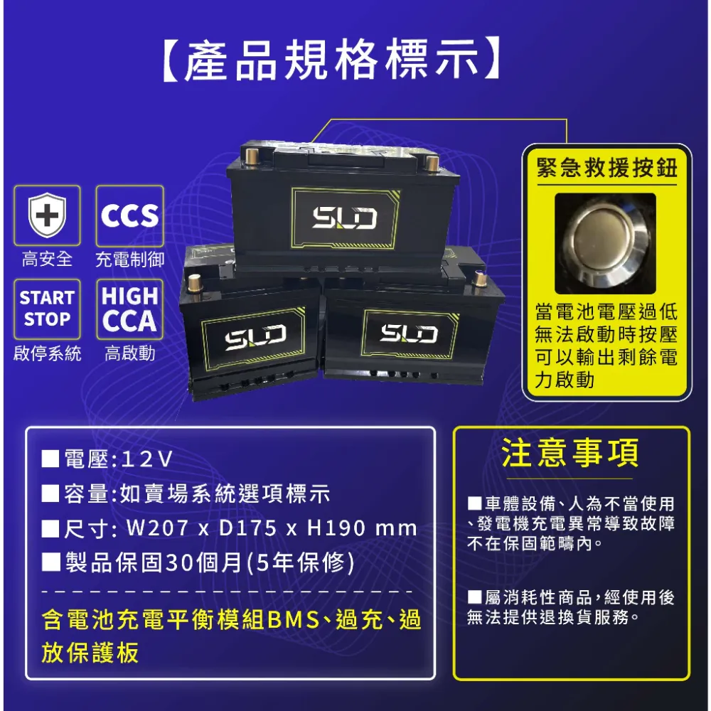 商品SLD 磷酸鋰鐵電池 LN5 汽車電瓶 同DIN100 60038 適用 BMW BENZ W203 保固30個月