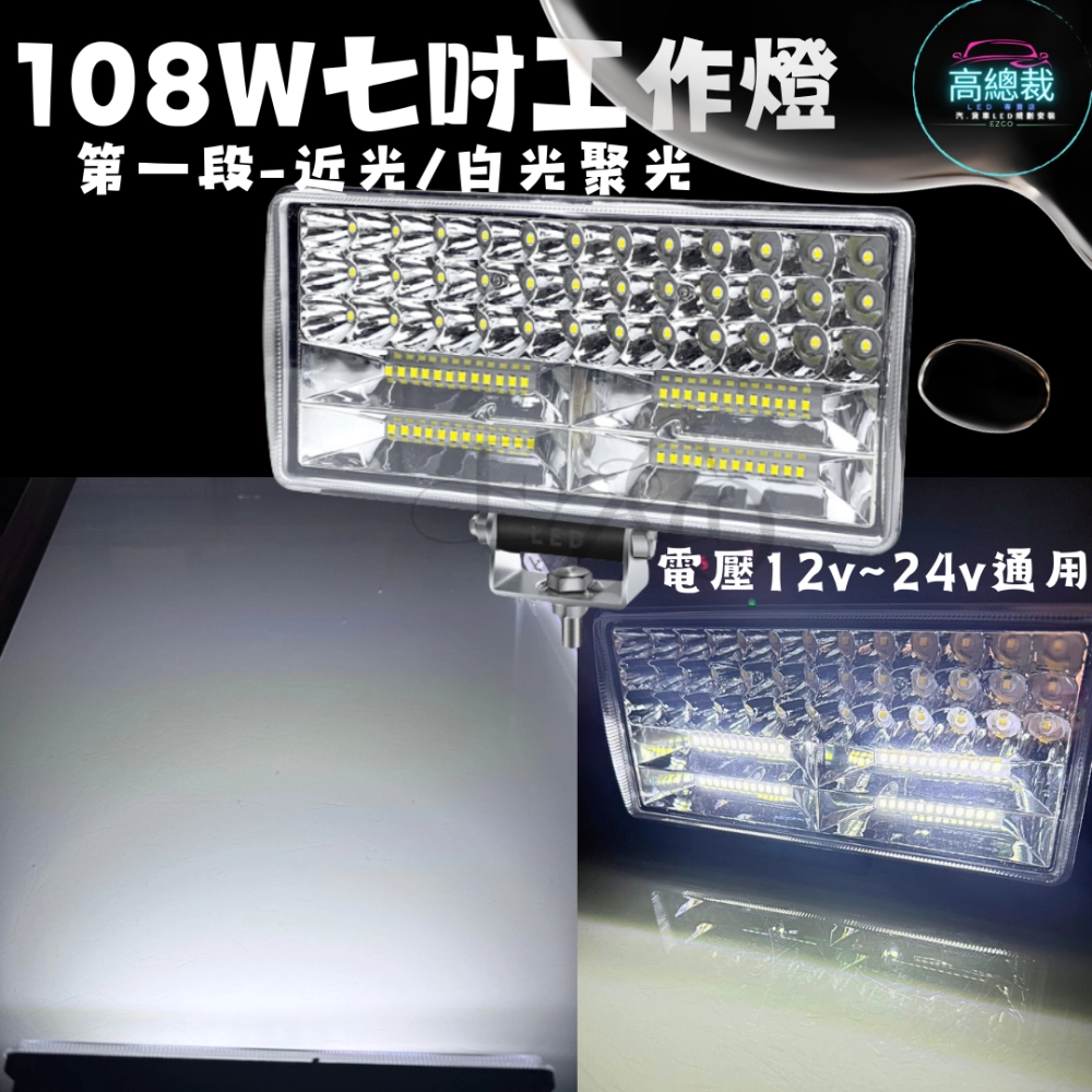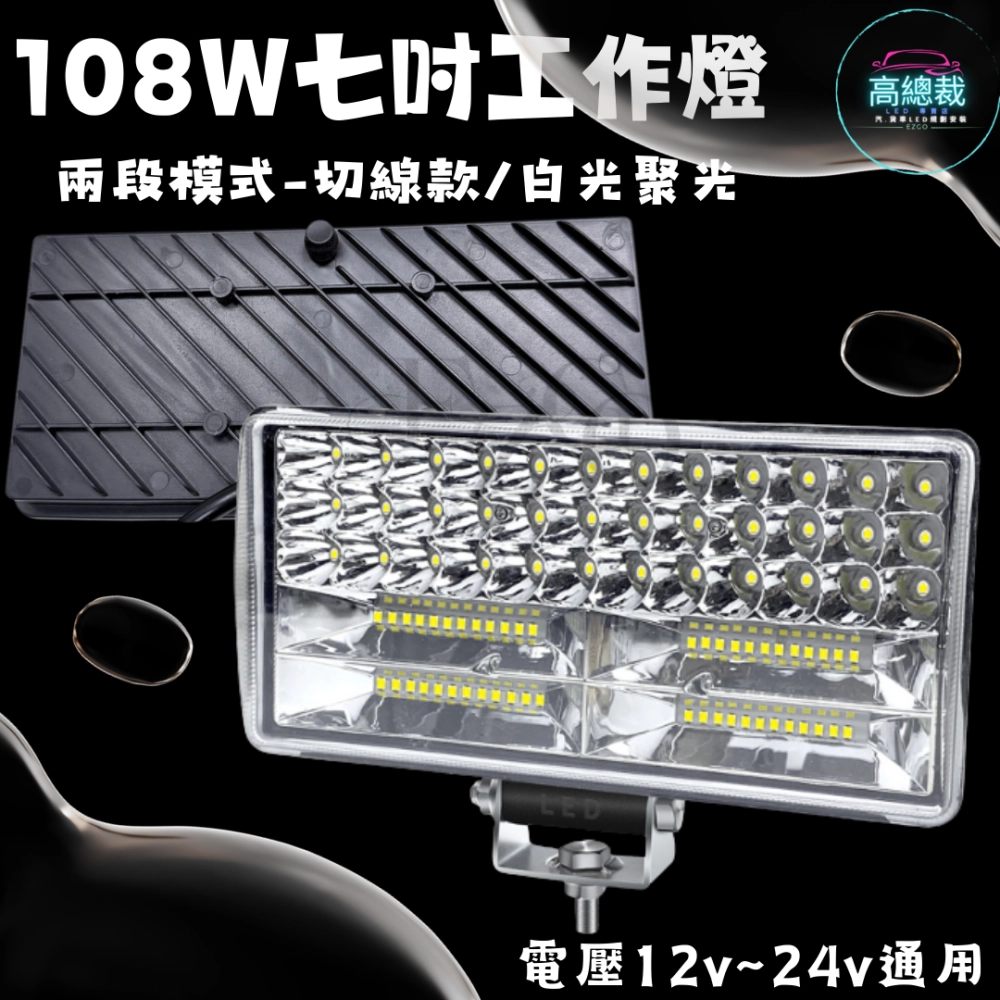 商品【高總裁LED 】台灣現貨 108W七寸工作燈 三線 12V 24V 魚眼 聚光 白光 大 工程車 高亮度 防水