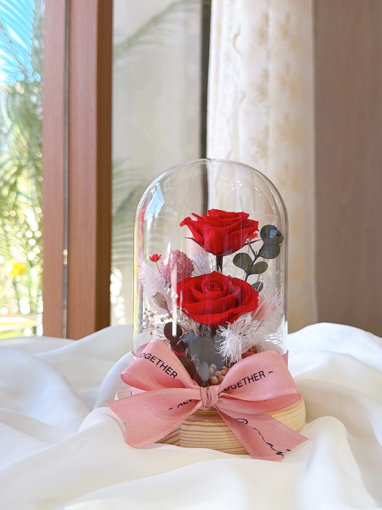 做.作 花室製作花禮的玫瑰花與葉子花材…等,皆來自於日本大地農園;溫柔的對待可存放1-2年。