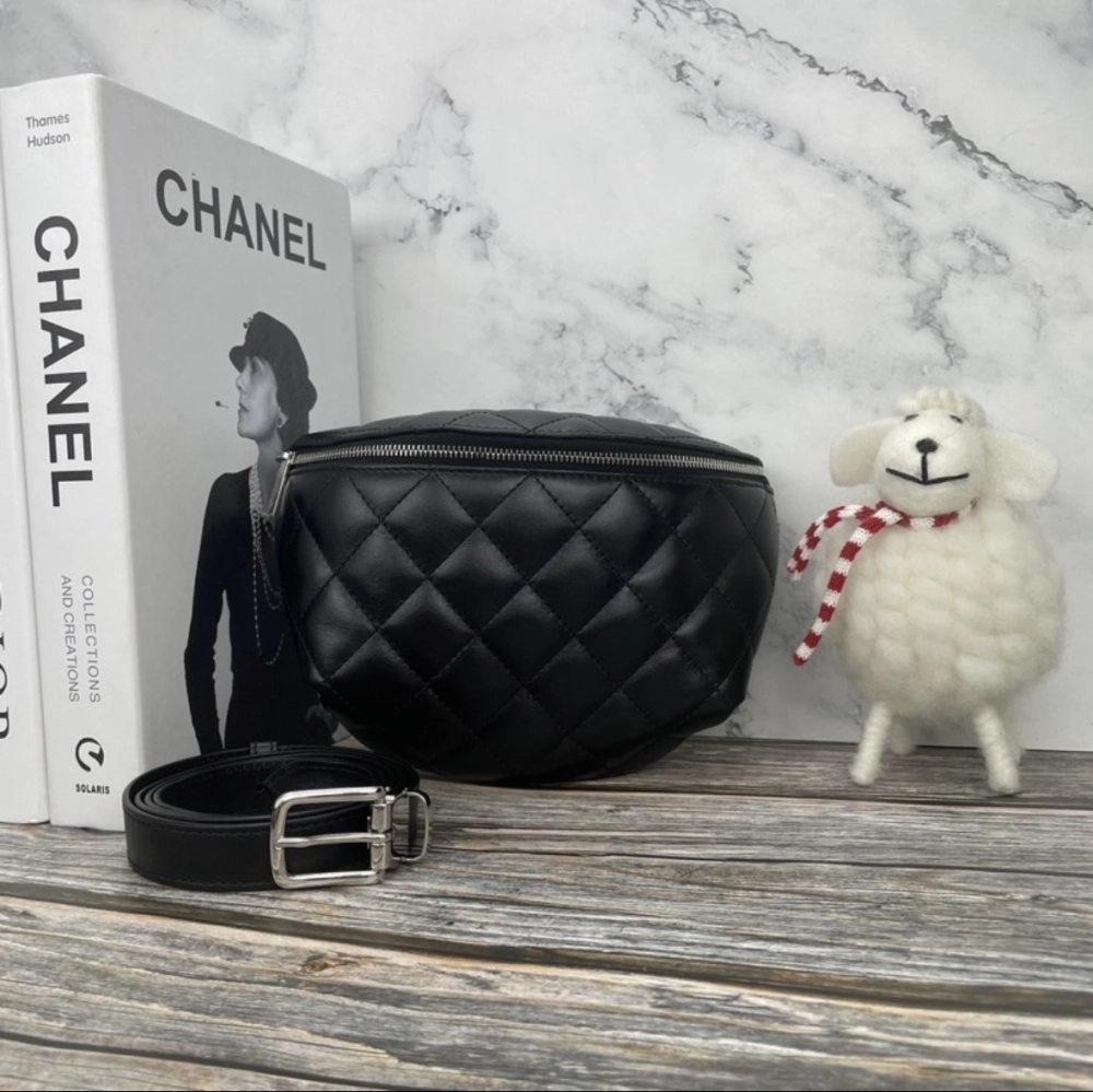 • CHANEL全新 經典菱格紋小牛皮拉鍊 腰包/胸口包