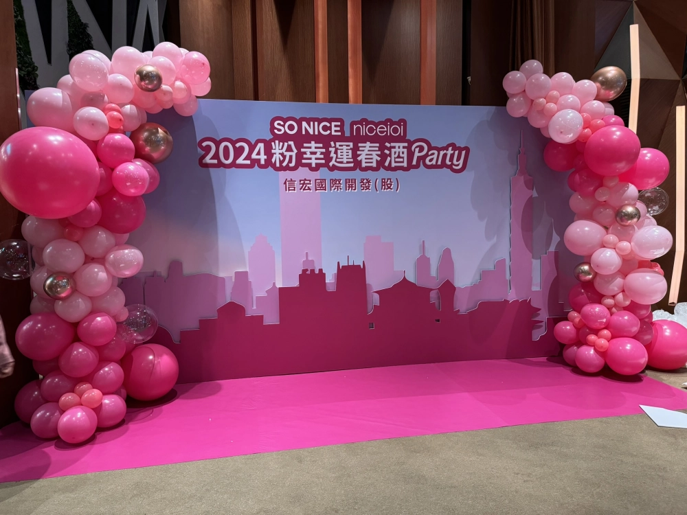 • 【專屬派對】客製化企業主題背板+不規則氣球柱拍照區佈置|尾牙春酒|品牌發表會