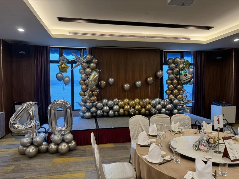 🔢 專屬數字立柱: 超吸睛的銀色大數字立柱擺放於舞台前方,可完全客製化企業週年數字,拍照打卡絕對不會認錯主角!