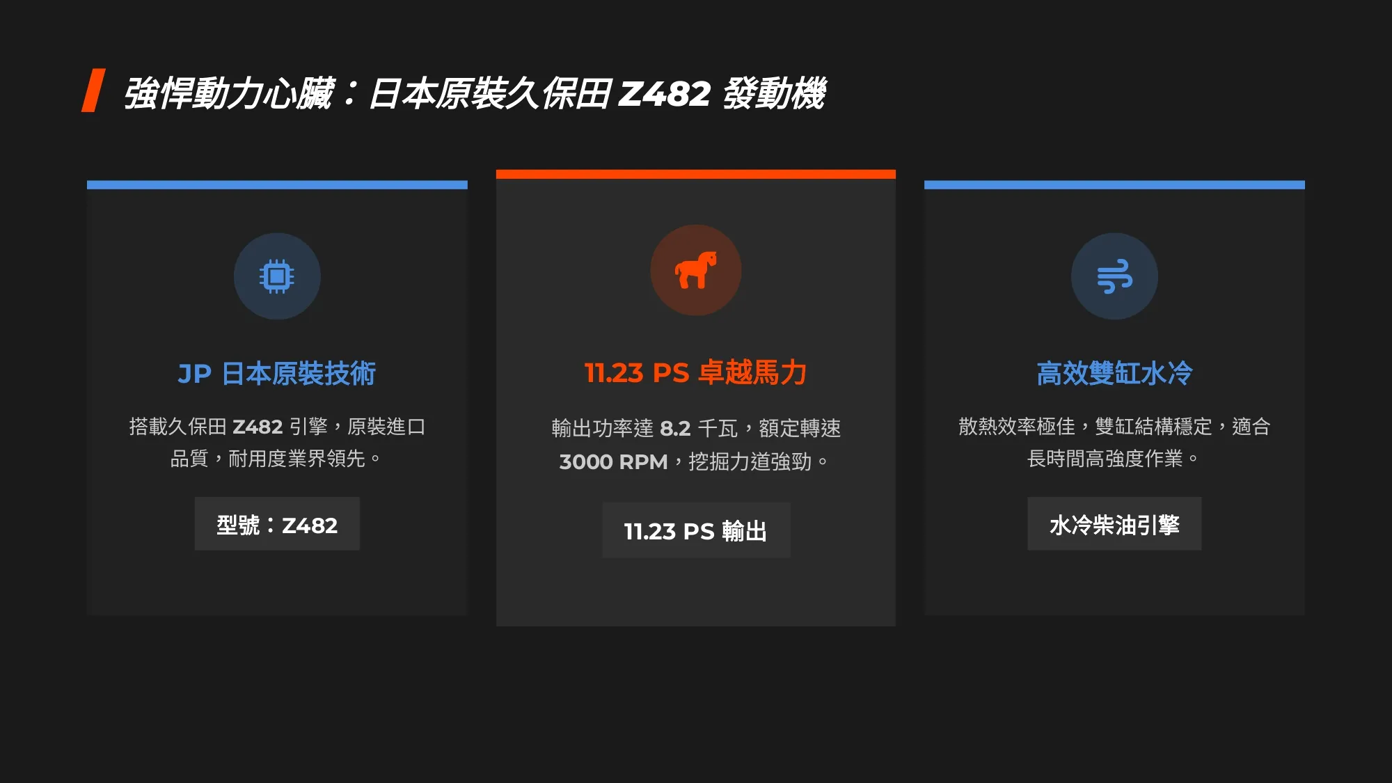 - 日本原裝進口 (久保田發動機,品質保證!)