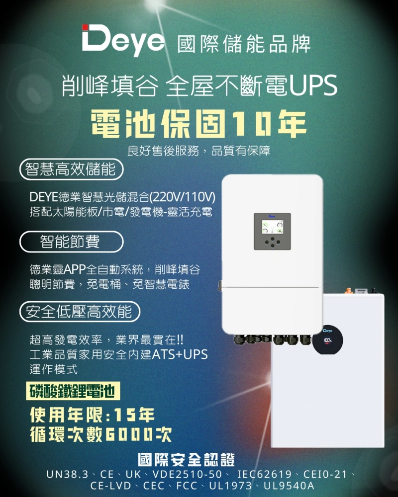 - 安全可靠:採用無鈷磷酸鋰電池 (LFP),具備高能量密度、安全性高且壽命長。