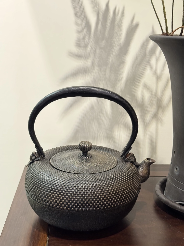 • 照光堂堂主 心齋作 平丸型 霰紋 砂鐵壺