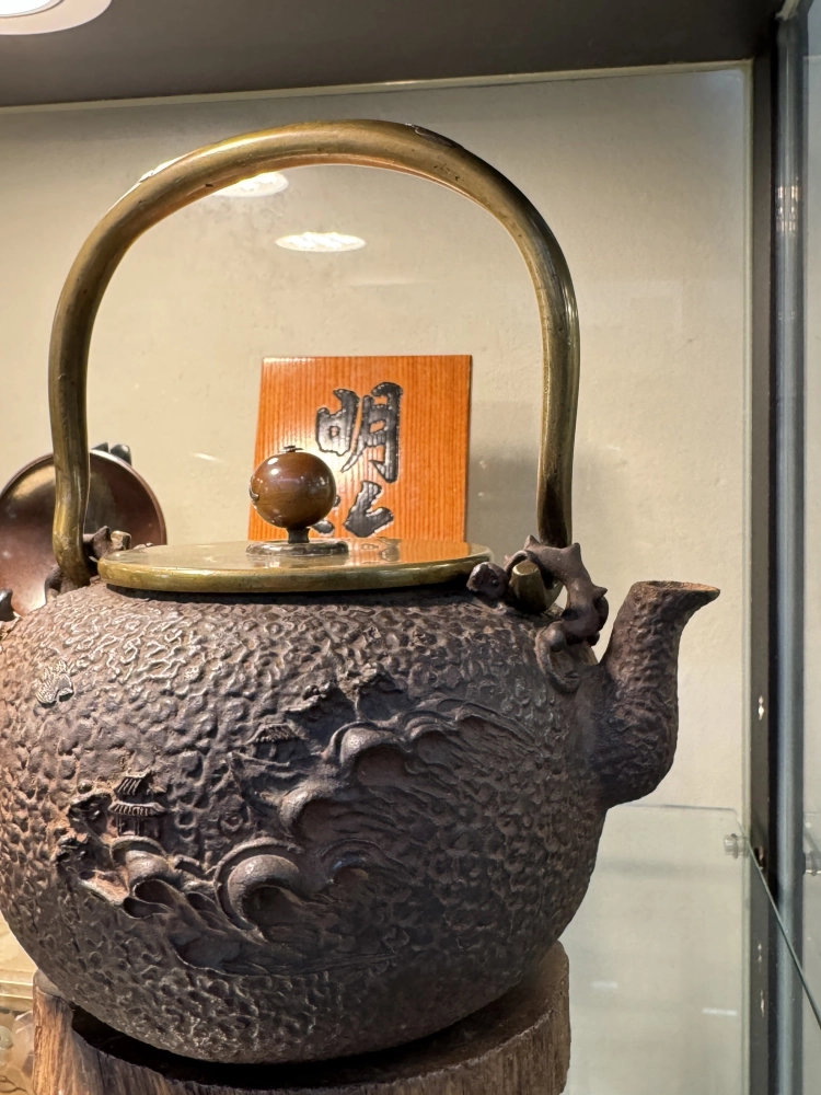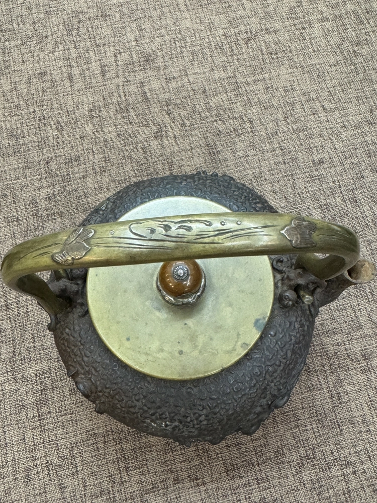 銀鑲嵌 波千鳥老鐵瓶