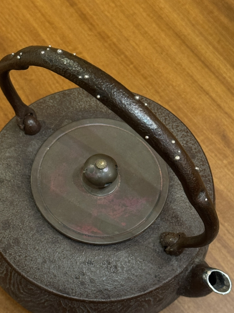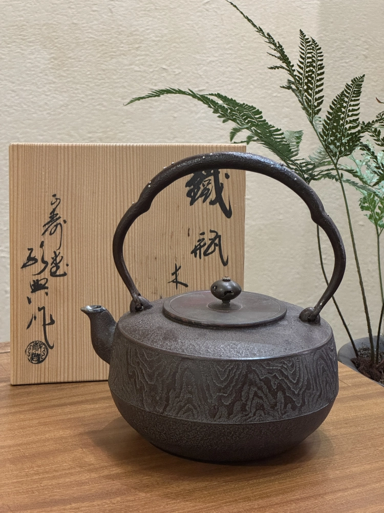 • 高橋敬典 平丸形 木紋銀把銀口老鐵壺