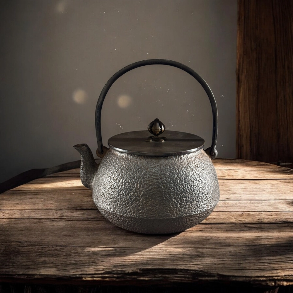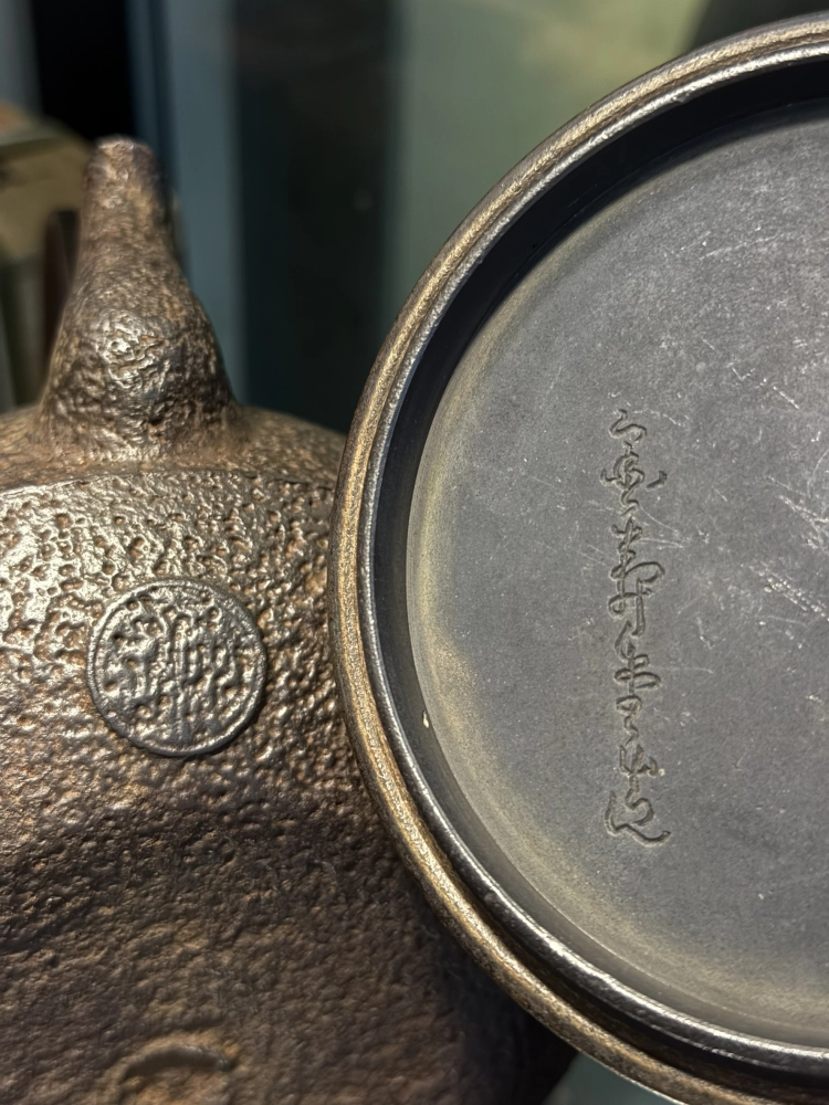 • 金壽堂二代雨宮宗兵衛作 嵌銀平把老鐵瓶
