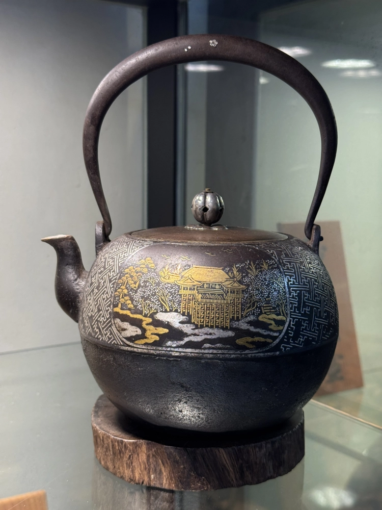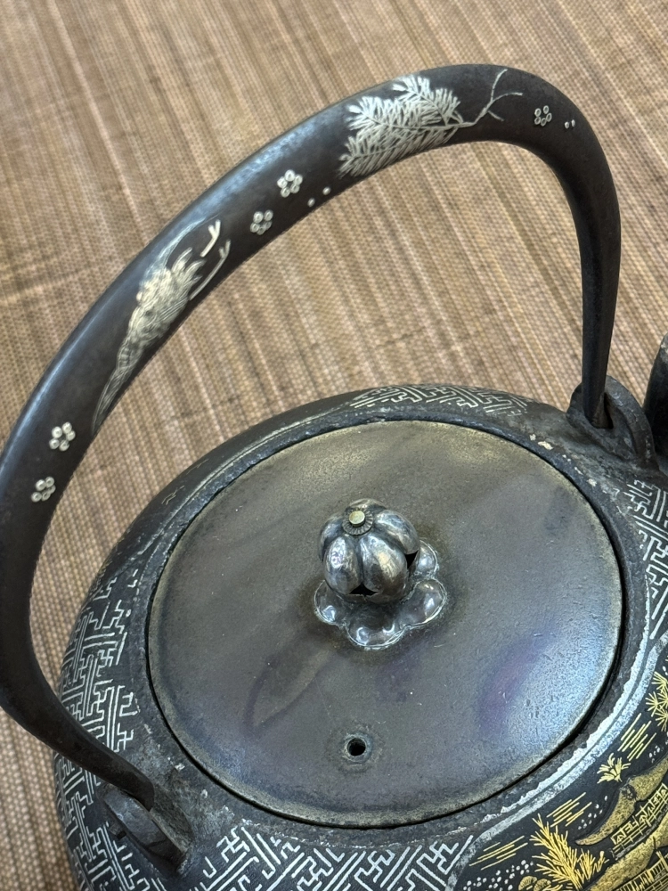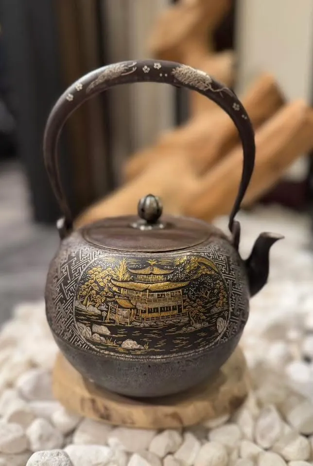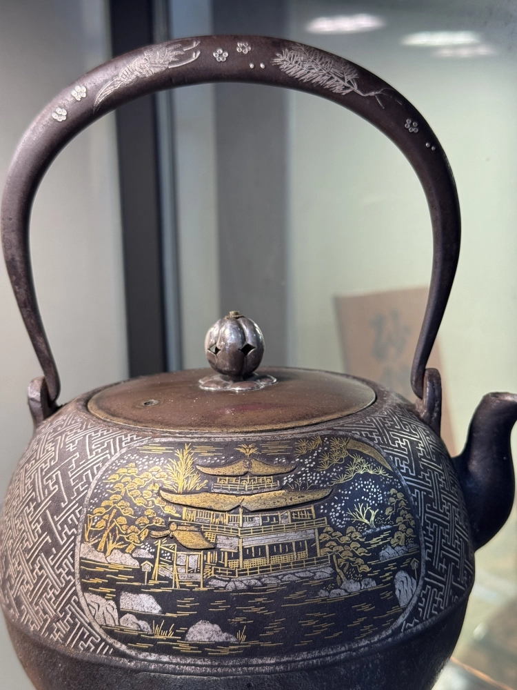 • 金壽堂 丸形清水寺金閣寺 金銀象嵌老鐵瓶