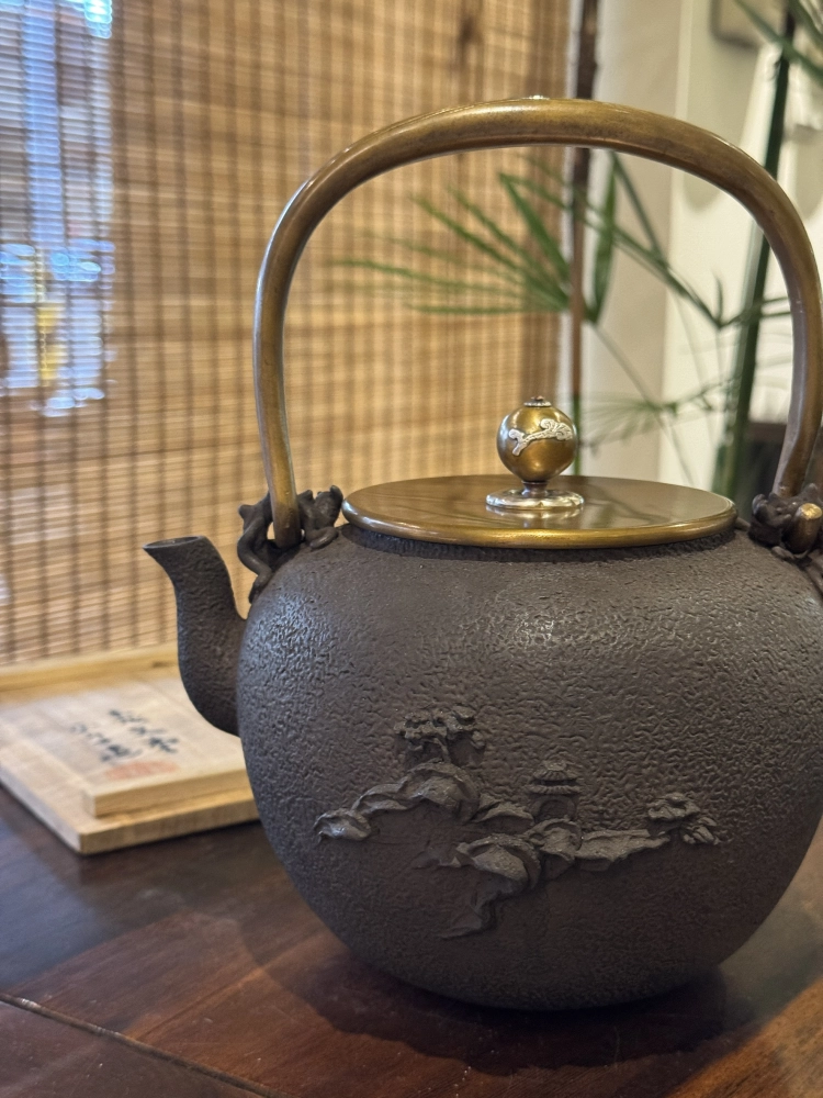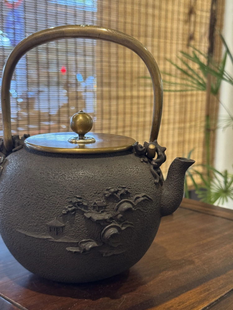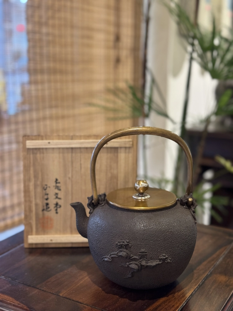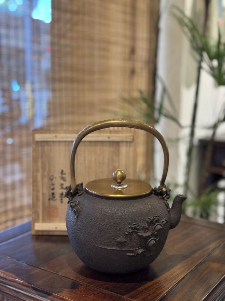 • 龜文堂堂主 波多野正平作 溪山觀月圖 老鐵壺