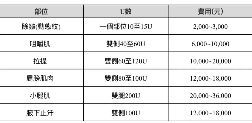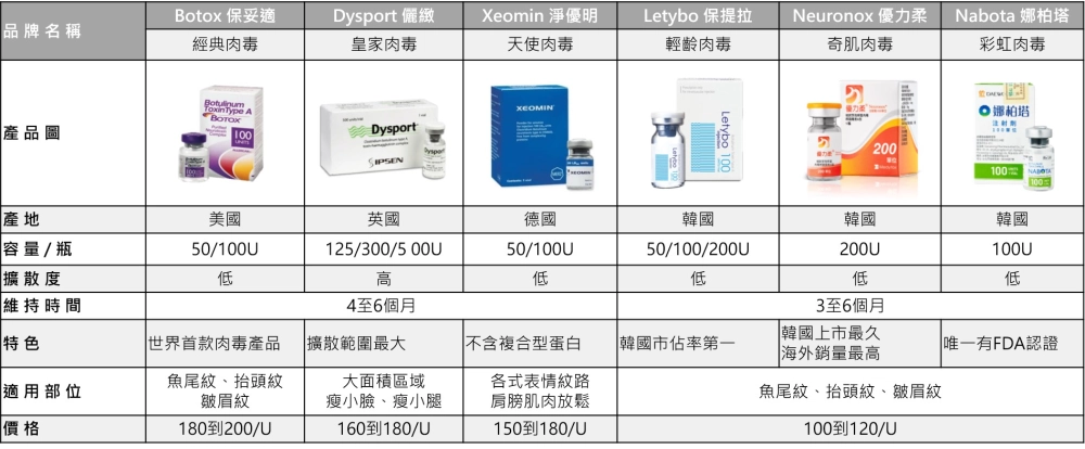 以下是常見肉毒桿菌品牌的詳細整理: