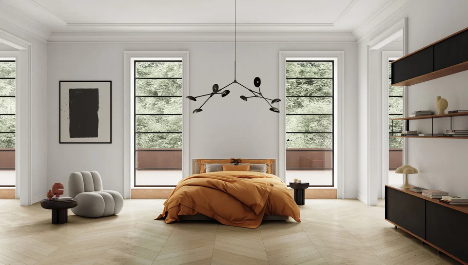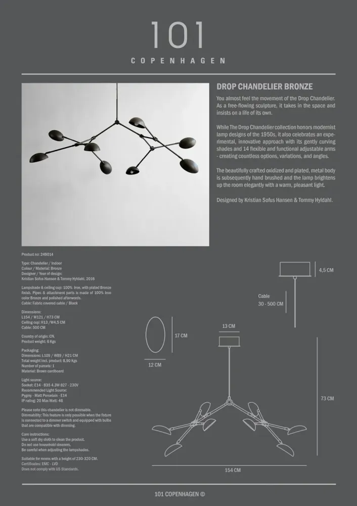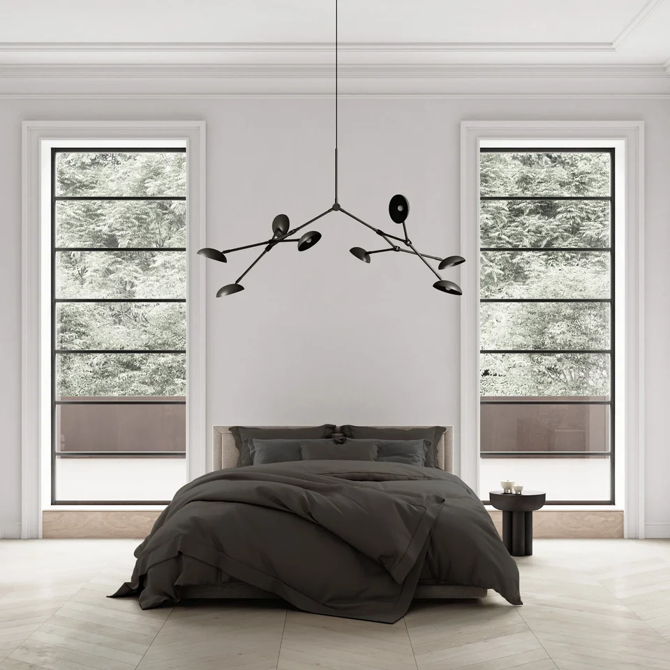 Drop吊燈彷彿帶有動感,以自由流動的雕塑形式融入空間,展現獨特的生命力。此系列致敬 1950 年代的現代主義燈飾設計,同時融合了大膽創新的設計手法,以14個可調節的靈活燈臂提供創新、多樣的照明選擇。燈體採用精緻的青銅電鍍金屬製成,經手工細緻拋光,燈光柔和溫暖,為空間帶來優雅氛圍。