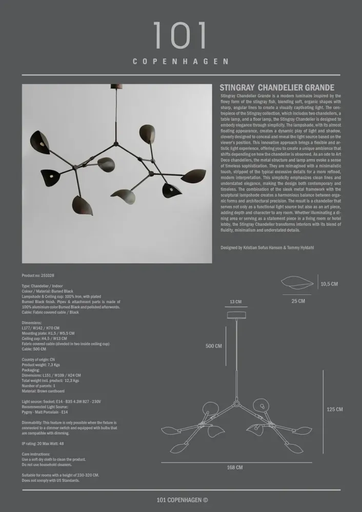 靈感來自魟魚(Stingray)優雅流暢的律動,Stingray 照明系列巧妙融合了柔和曲線與鮮明線條。燈罩懸浮於空中,宛如雕塑般的造型,在光與影之間創造出動態變化的視覺效果。隨著觀看角度的轉換,燈罩時隱時現地遮掩或露出光源,營造出迷人且變化萬千的光影體驗。