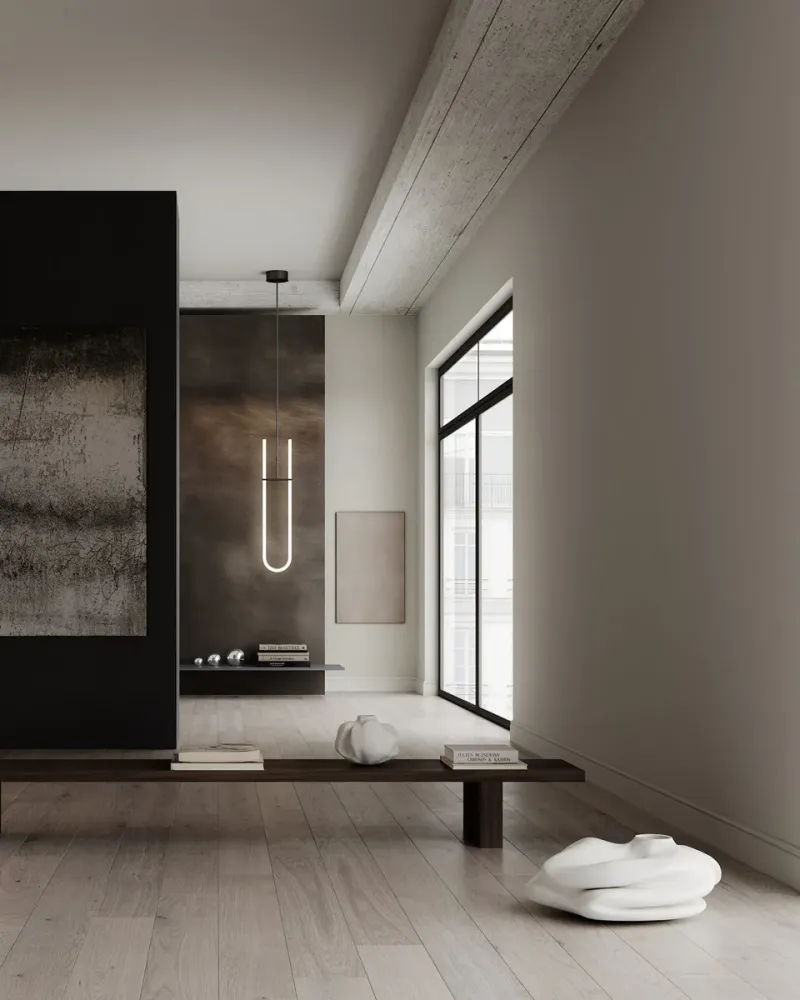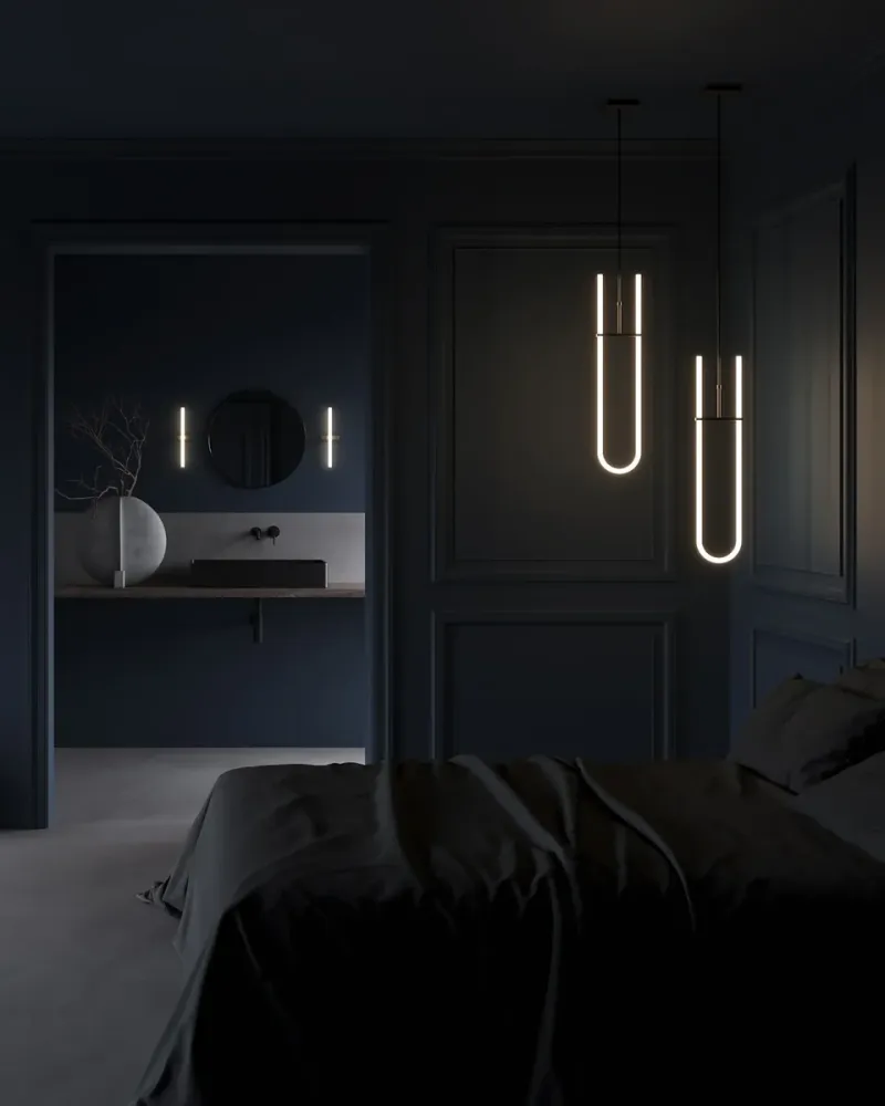 靈感來自極簡藝術的 Curve 吊燈,將光和雕塑結合到圖形照明設計中,呈現出一種引人注目的圖形化照明設計。以光滑的白色壓克力燈管為核心,內部配備了壽命達25,000小時的長效 LED光源,色溫為 2400K,營造出溫暖的光線效果。