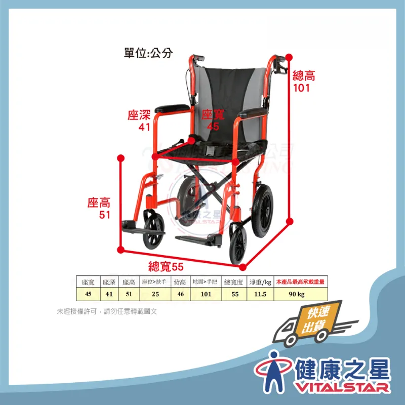 商品恆伸 ER0070-1 鋁合金移位輪椅 【BA款輪椅】