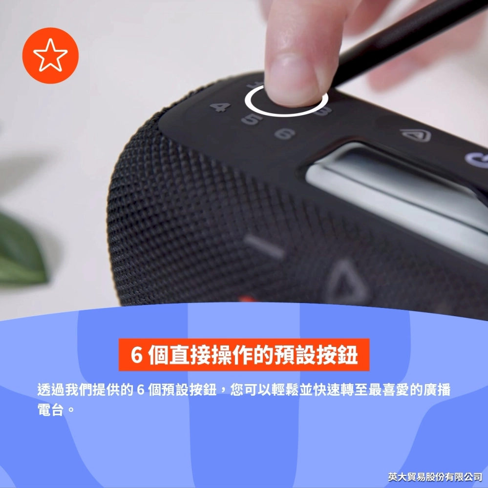 ●支援雙機立體聲配對與Auracast™多喇叭串連功能