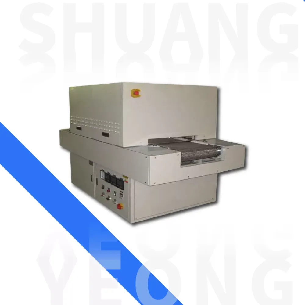 (1) 功能 : 可選擇不銹鋼輸送網或鐵氟龍輸送網,網帶寬度有14″, 18″,25,36″等多種尺寸可供選擇,變頻器調整輸送速度,可設定分區多段控制