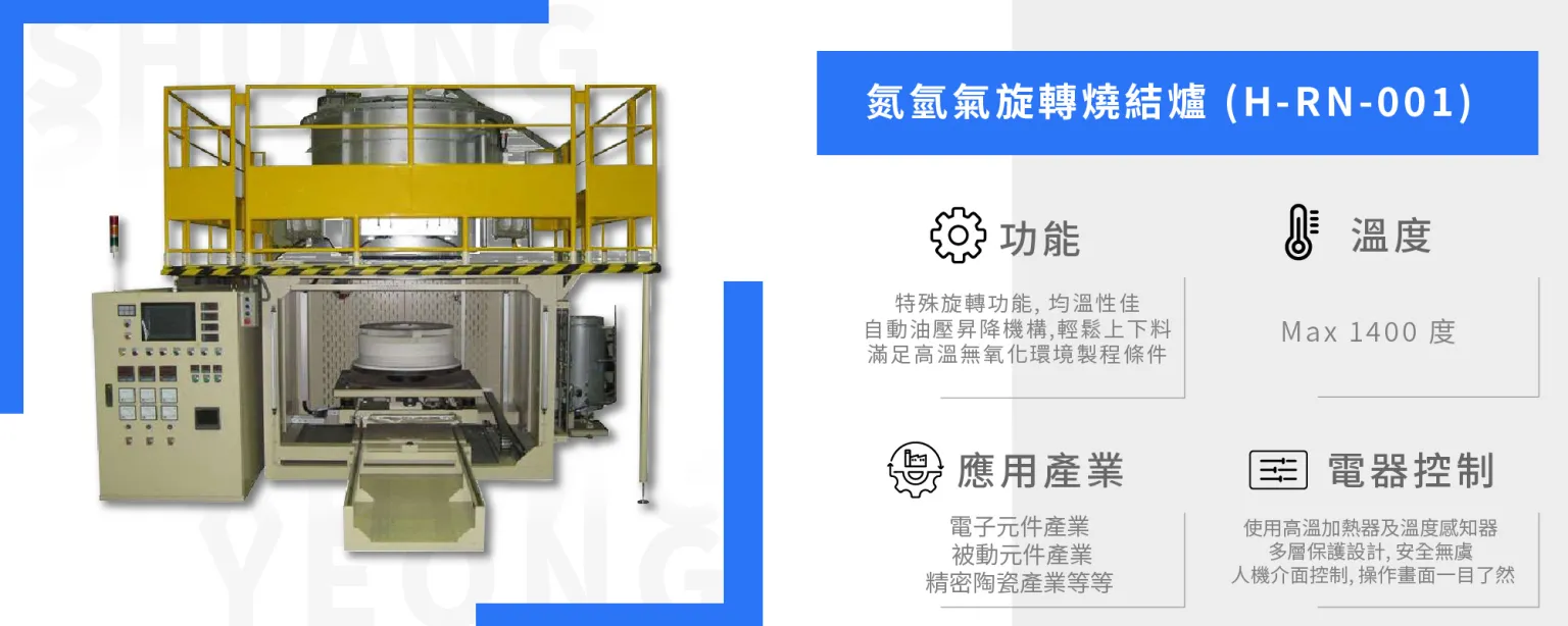 (1) 功能 : 特殊旋轉功能,均溫性佳,自動油壓昇降機構,輕鬆上下料, 滿足高溫無氧化環境製程條件