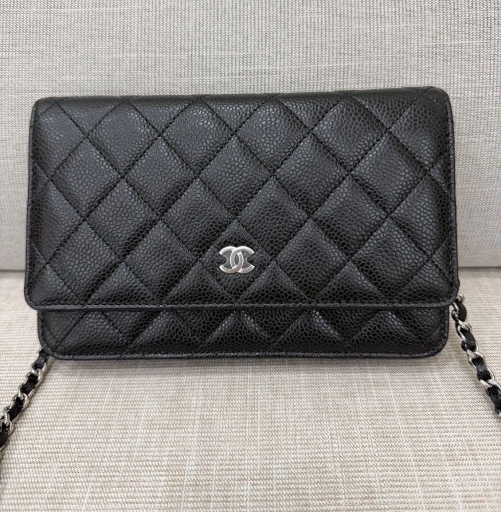 • Chanel 全新 經典荔枝紋牛皮 WOC 黑色 銀釦 芯片款